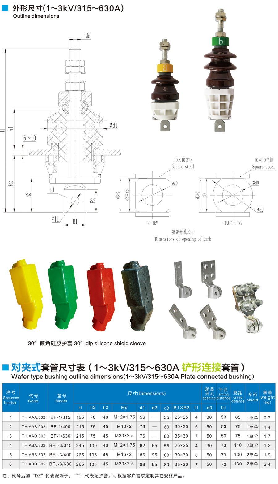 DIN standard bushing 1-52kV