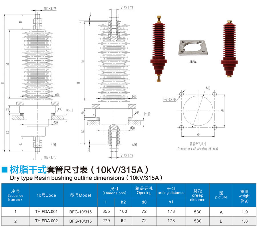 DIN standard bushing 1-52kV