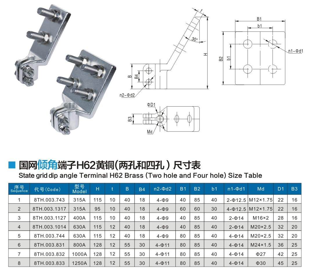 国网倾角端子H62黄铜(两孔和四孔)
