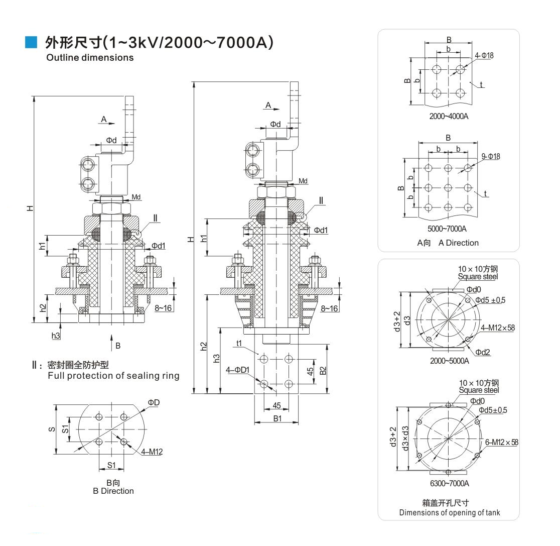 穿杆式套管1~3kV/2000~7000A