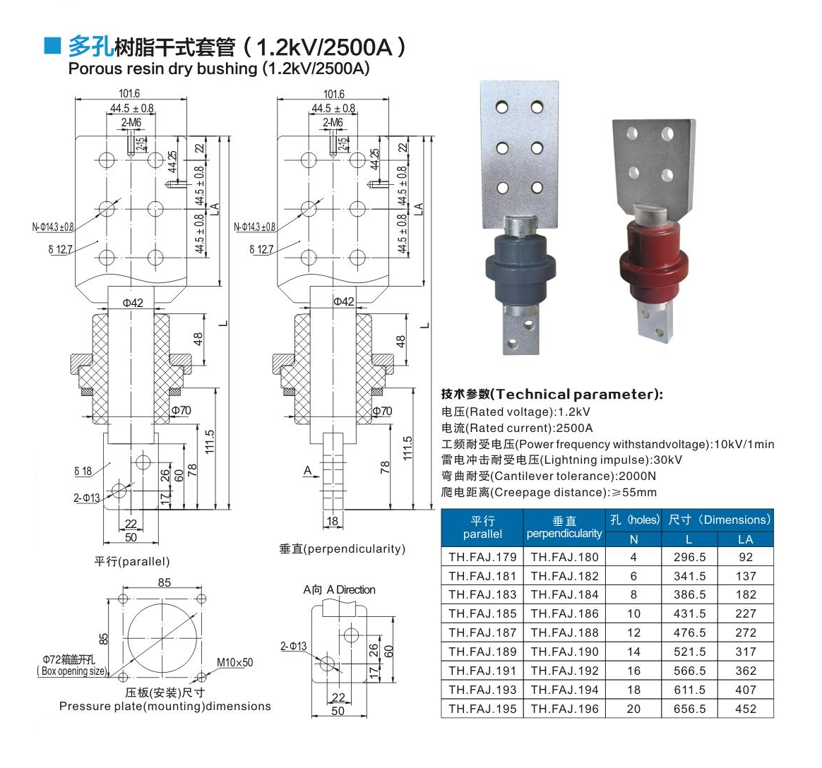 多孔树脂干式套管1.2kV/2500A