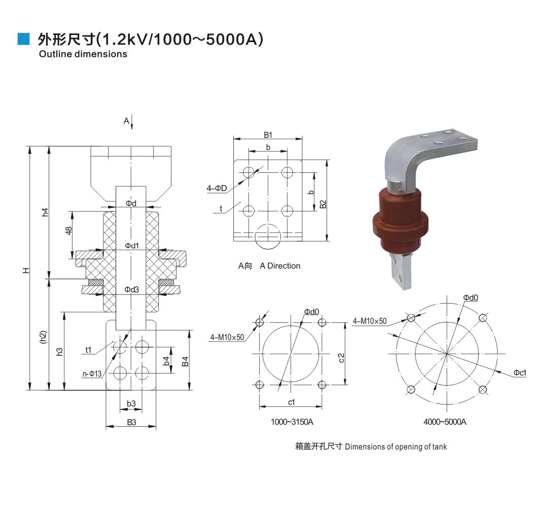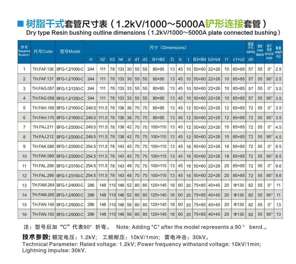 树脂干式套管1.2kV/1000~5000A铲形连接