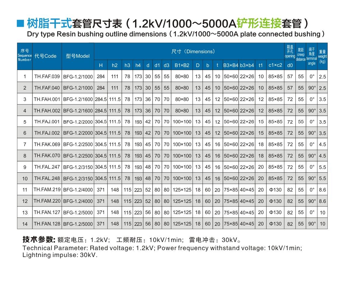 树脂干式套管1.2kV/1000~5000A铲形连接
