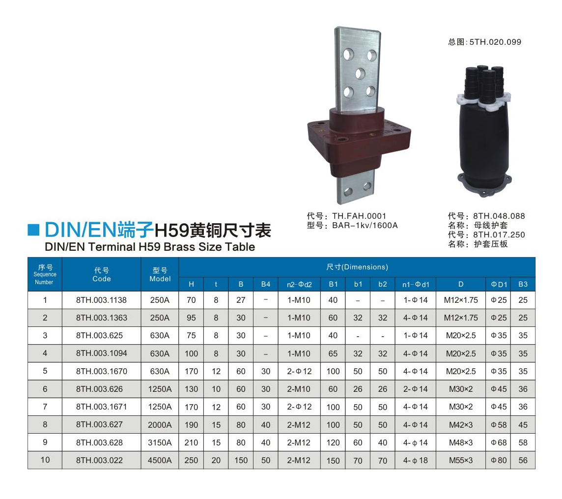 "メイリン モデルコレクション メ" DIN/EN端子H59黄铜尺寸表
